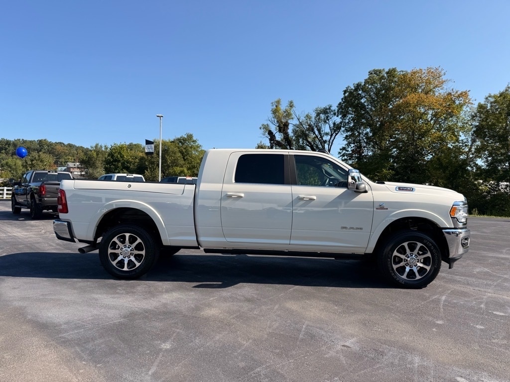 Chrome Bumper Package (Bright Front Bumper, Bright Rear Bumper, and Chrome Tow Hooks), Heavy Duty Snow Plow Prep Group, Longhorn Level 1 Equipment Group (12" Touchscreen Display, 17 Speaker harman/kardon Premium Sound, 4G LTE Wi-Fi Hot Spot, Alexa Built-In, Apple CarPlay, Blind Spot & Cross Path Detection, Connected Travel & Traffic Services, Connectivity - US/Canada, Disassociated Touchscreen Display, For Details Visit DriveUconnect.com, For More Info, Call 800-643-2112, Global Telematics Box Module (TBM), Google Android Auto, GPS Antenna Input, GPS Navigation, HD Radio, Integrated Voice Command w/Bluetooth, LED Bed Lighting, MOPAR Spray In Bedliner, Off-Road Information Pages, Power Deployable Running Boards, Radio: Uconnect 5 Nav w/12.0" Display, Ramcharger Wireless Charging Pad, Selectable Tire Fill Alert, SiriusXM Radio Service, SiriusXM w/360L, and Trailer Tow Pages), Quick Order Package 2HK Longhorn, 10 Speakers, 115V Auxiliary Rear Power Outlet, 2 Way Rear Headrest Seat, 220 Amp Alternator, 3.73 Axle Ratio, 4 Adjustable Cargo Tie-Down Hooks, 4 Way Front Headrests, 4-Wheel Disc Brakes, ABS brakes, Active Noise Control System, Adjustable pedals, Air Conditioning, Alloy wheels, AM/FM radio: SiriusXM with 360L, Apple CarPlay/Android Auto, Audio memory, Auto High-beam Headlights, Auto-dimming door mirrors, Auto-dimming Rear-View mirror, Automatic temperature control, Brake assist, Bucket Seats, Bumpers: body-color, Center Hub, Center Stop Lamp w/Cargo View Camera, Clearance Lamps, Compass, Delay-off headlights, Driver door bin, Driver vanity mirror, Dual front impact airbags, Dual front side impact airbags, Electronic Stability Control, Electronically Controlled Throttle, Front anti-roll bar, Front Bucket Seats, Front Center Armrest w/Storage, Front dual zone A/C, Front fog lights, Front License Plate Bracket, Front reading lights, Front Seat Back Map Pockets, Full Length Premium Upgraded Floor Console, Fully automatic headlights, Garage door transmitter, Genuine wood console insert, Genuine wood dashboard insert, Genuine wood door panel insert, Heated door mirrors, Heated Front Seats, Heated front seats, Heated rear seats, Heated Second Row Seats, Heated Steering Wheel, Heated steering wheel, High Back Seats, Illuminated entry, Leather steering wheel, Low tire pressure warning, Manufacturer's Statement of Origin, Memory seat, MOPAR Front & Rear Rubber Floor Mats, Navigation System, Occupant sensing airbag, Outside temperature display, Overhead airbag, Overhead console, Panic alarm, ParkView Rear Back-Up Camera, Passenger door bin, Passenger vanity mirror, Pedal memory, Power 2-Way Driver Lumbar Adjust, Power 2-Way Passenger Lumbar Adjust, Power 8-Way Adjustable Passenger Seat, Power Adjust 8-Way Driver Seat, Power door mirrors, Power driver seat, Power passenger seat, Power steering, Power Sunroof, Power windows, Premium Filigree Leather Seats, Radio data system, Radio/Driver Seat/Mirrors/Pedals Memory, Rain sensing wipers, RamBox Cargo Management System, Rear 60/40 Folding Seat, Rear reading lights, Rear seat center armrest, Rear step bumper, Rear window defroster, Remote keyless entry, Security system, Speed control, Split folding rear seat, Steering wheel mounted audio controls, Tachometer, Tilt steering wheel, Tip Start, Traction control, Trip computer, Truck Bed Cargo Divider, Turn signal indicator mirrors, Variably intermittent wipers, Vendor Painted Cargo Box, Vendor Painted Cargo Box Tracking, Ventilated Front Seats, Ventilated front seats, Voltmeter, Wheels: 18" x