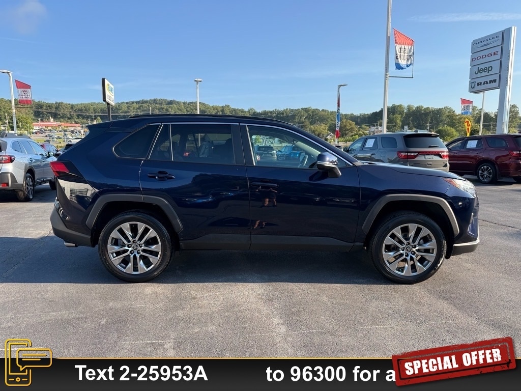 All Weather Liner Package (TMS) (All Weather Floor Liners), XLE Premium Grade Weather Package (3 Spoke Leather Heated Steering Wheel, Driver Seat w/2-Position Memory Function, Front Seat Heating, and Rain Sensing Front Wipers), XLE Premium Package (Front Door Smart Key System w/Push Button Start, LED Front Fog & Driving Lamp, and Tilt & Slide Moon Roof), 2.5L 4-Cylinder DOHC Dual VVT-i, AWD, Black Artificial Leather, 3 Spoke Leather Steering Wheel, 4-Wheel Disc Brakes, 6 Speakers, ABS brakes, Air Conditioning, Alloy wheels, AM/FM radio: SiriusXM, AM/FM Stereo, Apple CarPlay/Android Auto, Auto High-beam Headlights, Automatic temperature control, Axle Ratio: 3.177, Brake assist, Bumpers: body-color, Delay-off headlights, Door Edge Guard (TMS), Driver door bin, Driver vanity mirror, Dual front impact airbags, Dual front side impact airbags, Electronic Stability Control, Emergency communication system: Safety Connect with 1-year trial, Exterior Parking Camera Rear, First Aid Kit (TMS), Four wheel independent suspension, Front anti-roll bar, Front Bucket Seats, Front Center Armrest, Front dual zone A/C, Front reading lights, Fully automatic headlights, Heated door mirrors, Illuminated entry, Knee airbag, Leather Shift Knob, Low tire pressure warning, Occupant sensing airbag, Outside temperature display, Overhead airbag, Overhead console, Panic alarm, Passenger door bin, Passenger vanity mirror, Power door mirrors, Power driver seat, Power Liftgate, Power moonroof, Power steering, Power windows, Radio data system, Rear anti-roll bar, Rear seat center armrest, Rear window defroster, Rear window wiper, Remote keyless entry, Roof rack: rails only, SofTex Seat Trim, Speed control, Speed-sensing steering, Split folding rear seat, Spoiler, Steering wheel mounted audio controls, Tachometer, Telescoping steering wheel, Tilt steering wheel, Traction control, Trip computer, Turn signal indicator mirrors, Variably intermittent wipers, and Wheels: 17" 5-Spoke Silver Alloy.